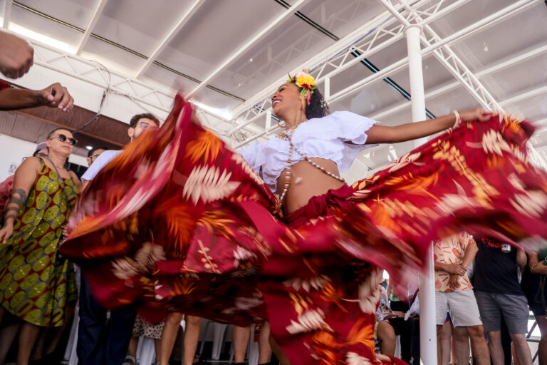 Más allá del vasto paisaje amazónico, uno de los momentos más destacados de la experiencia fue la presentación musical en vivo del carimbó. Este ritmo es una expresión cultural de origen indígena y africano, con una fuerte influencia caribeña, especialmente perceptible en los movimientos de falda y cadera. Desarrollado en el estado de Pará, está reconocido como Patrimonio Cultural Inmaterial de Brasil y representa la fusión de las tradiciones indígenas, africanas y portuguesas, una celebración viva de la diversidad amazónica.