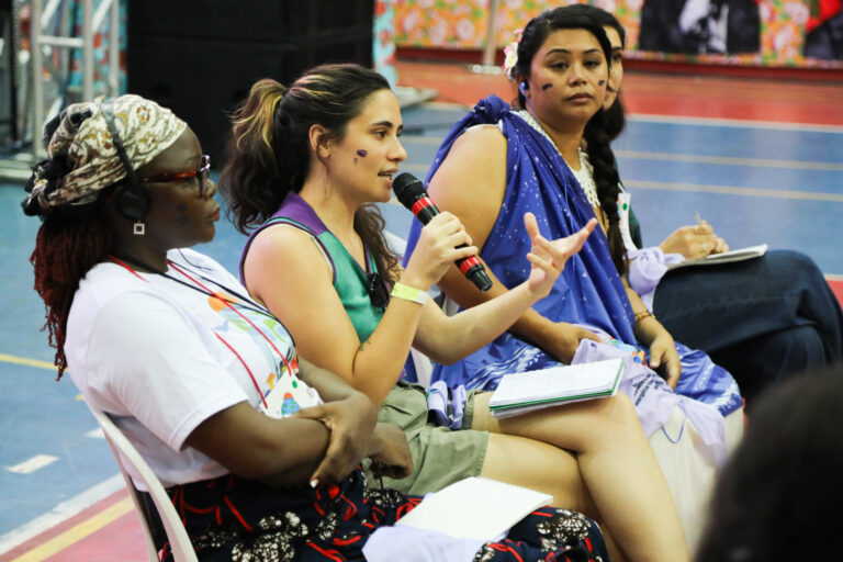 Ella reforzó la urgencia de reconocer que el cambio climático afecta especialmente a las mujeres, repercutiendo en la soberanía alimentaria, aumentando la sobrecarga de trabajo y agravando la violencia y la violación de derechos. Para Natália, la respuesta ya existe en la práctica de las mujeres. «En nuestra organización y en nuestra rutina tenemos las soluciones a los problemas que debatimos. El reto es luchar para poner en práctica estas soluciones a nivel global».